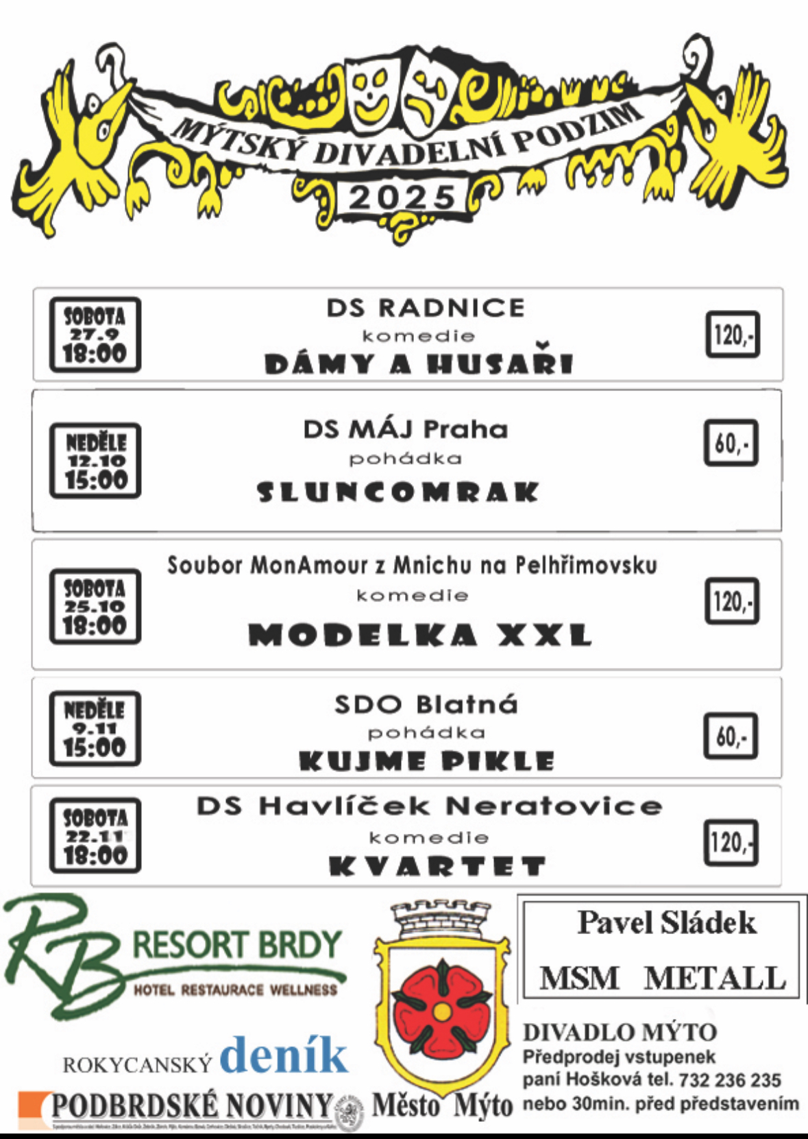 Je tady opět podzim a s ním přichází naše tradiční nesoutěžní divadelní přehlídka. Na své si přijdou milovních komedií, ale i děti, které potěší pohádky od ochotnických souborů. Je nám ctí přivítat už po jedenácté 5 divadelních souborů z různých koutů naší republiky.